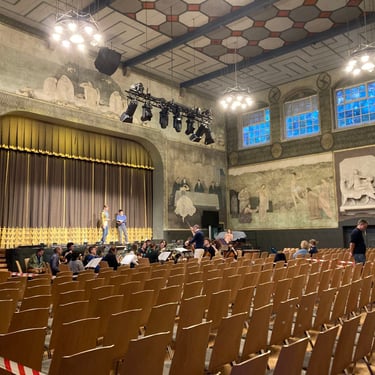 Sooo — I’m currently rehearsing Orpheus in the Underworld (Offenbach) in the beautiful and impressive Pfullinger Hallen (Germany), surrounded by gorgeous frescoes and a wonderfully kind company, organized by Opera Laiblin.